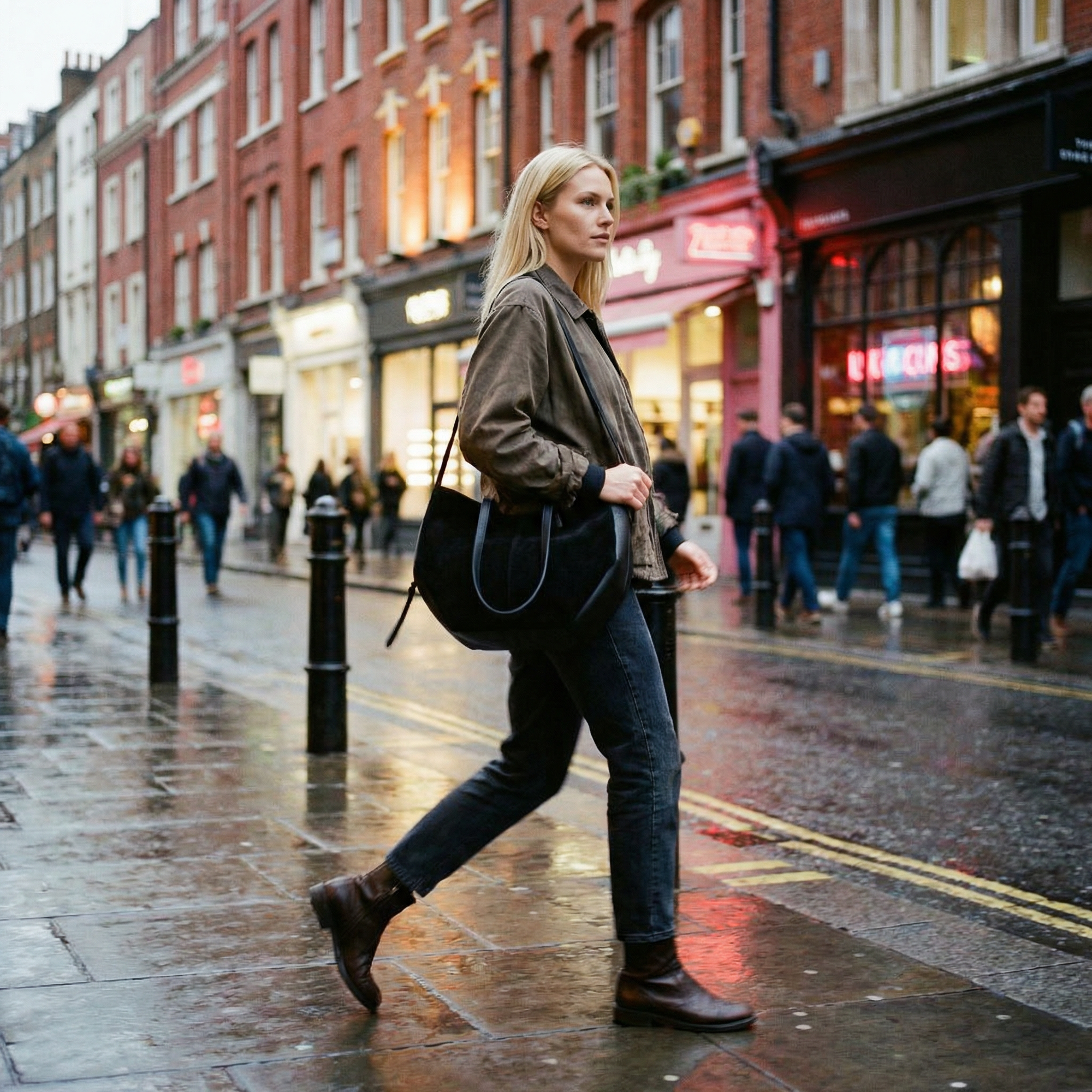 Unsere Taschen lassen sich mühelos zu verschiedensten Outfits kombinieren und setzen dabei immer ein stilvolles Statement: – Casual Looks: Ob Jeans, T-Shirt und Sneaker oder ein lässiger Oversized-Pullover – unsere Taschen bringen Ruhe und Hochwertigkeit in dein Outfit und machen jeden Alltagslook komplett. – Business & Büro: Kombiniert mit Blazer, Stoffhose oder Strickkleid wirken unsere Modelle elegant und professionell – ohne auf Persönlichkeit zu verzichten. – City & Freizeit: Zum luftigen Kleid, Trenchcoat oder Jumpsuit sind unsere Taschen der perfekte Begleiter – praktisch, leicht zu tragen und optisch ein echtes Highlight. – Minimalistische Styles: Unsere klaren Formen und feinen Details fügen sich ideal in reduzierte Looks ein und unterstreichen deinen Stil mit leiser Eleganz. Ganz gleich, ob du es klassisch, modern oder verspielt magst – unsere Taschen passen sich dir an. Sie ergänzen dein Outfit, ohne sich aufzudrängen – für einen Look, der immer stimmig ist.