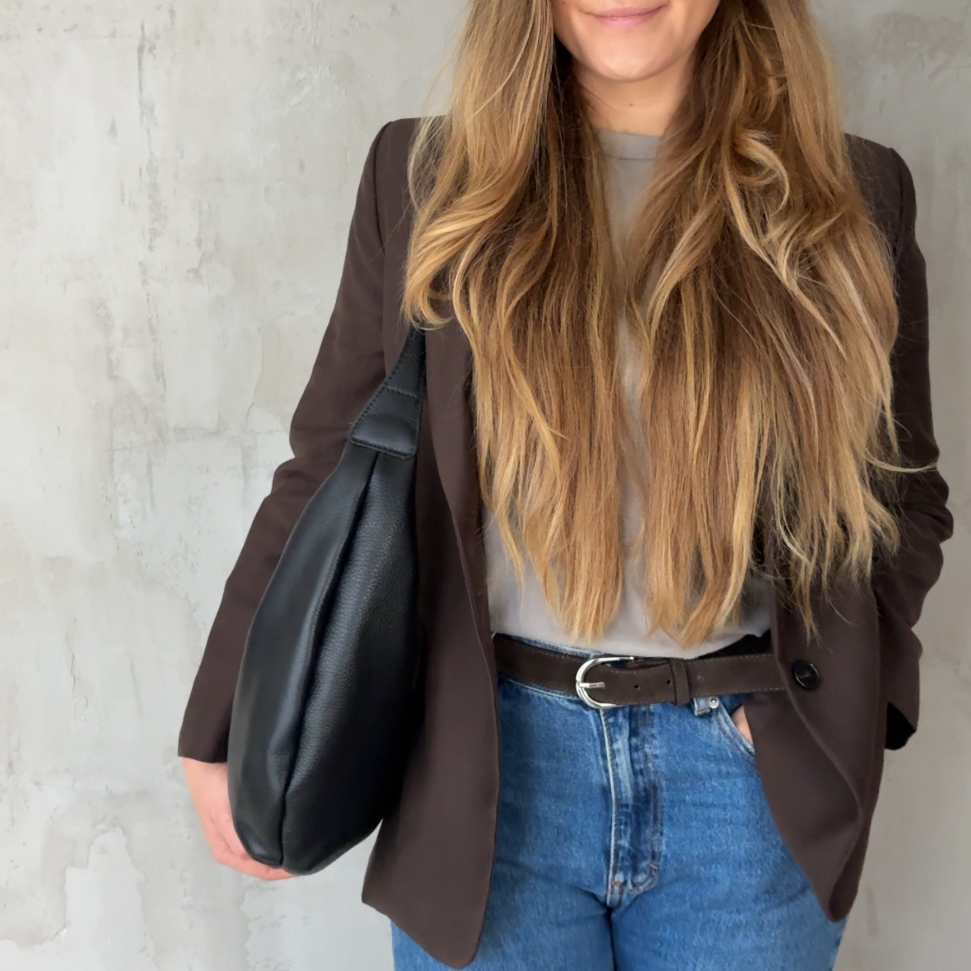 Unsere Taschen lassen sich mühelos zu verschiedensten Outfits kombinieren und setzen dabei immer ein stilvolles Statement: – Casual Looks: Ob Jeans, T-Shirt und Sneaker oder ein lässiger Oversized-Pullover – unsere Taschen bringen Ruhe und Hochwertigkeit in dein Outfit und machen jeden Alltagslook komplett. – Business & Büro: Kombiniert mit Blazer, Stoffhose oder Strickkleid wirken unsere Modelle elegant und professionell – ohne auf Persönlichkeit zu verzichten. – City & Freizeit: Zum luftigen Kleid, Trenchcoat oder Jumpsuit sind unsere Taschen der perfekte Begleiter – praktisch, leicht zu tragen und optisch ein echtes Highlight. – Minimalistische Styles: Unsere klaren Formen und feinen Details fügen sich ideal in reduzierte Looks ein und unterstreichen deinen Stil mit leiser Eleganz. Ganz gleich, ob du es klassisch, modern oder verspielt magst – unsere Taschen passen sich dir an. Sie ergänzen dein Outfit, ohne sich aufzudrängen – für einen Look, der immer stimmig ist.