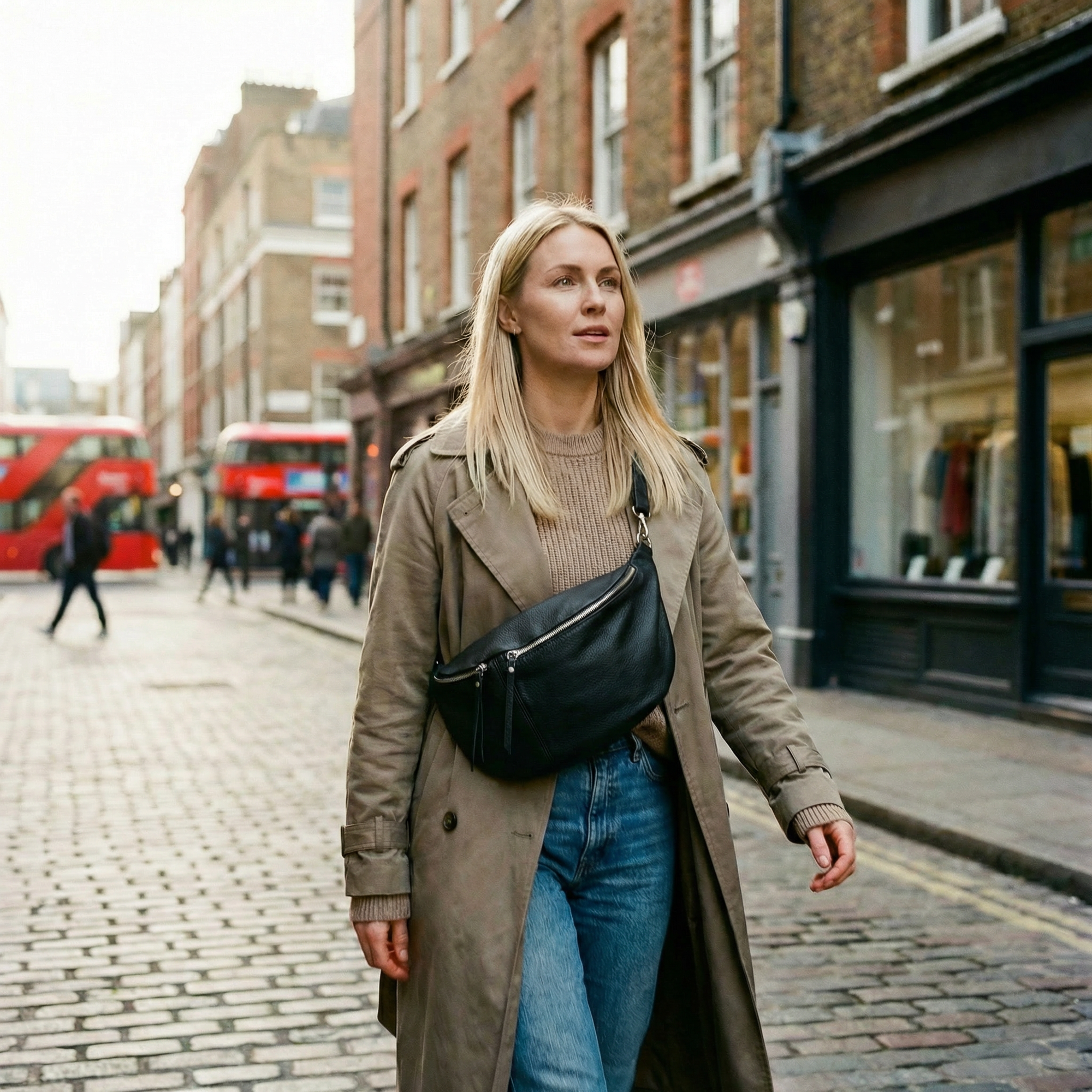 Unsere große Bauchtasche Clara ist der perfekte Begleiter für deinen nächsten Shopping-Trip. Sie bietet dir ausreichend Platz für alles Wichtige – von Smartphone über Geldbörse bis hin zu kleinen Einkäufen – und sorgt dabei dafür, dass du immer beide Hände frei hast. Ob beim entspannten Bummeln durch die Stadt oder beim spontanen Abstecher in deine Lieblingsboutique: Clara sitzt bequem, bleibt leicht und macht jede Bewegung mit. Praktisch, stylisch und durchdacht – so wird Shopping noch unkomplizierter.